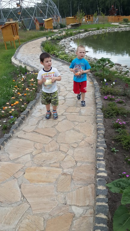 Это уже в большом зоопарке. Можно покормить животных капустой и морковкой