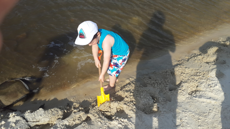 Больше всего понравился песок. Такой, честно говоря, я вижу в первый раз. Очень чистый, белый, мягкий. Дети целый день там возились