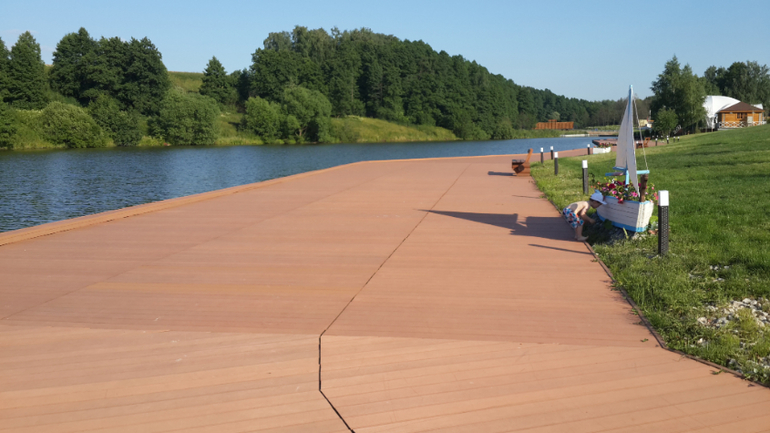 Есть и деревянный настил с милыми клумбами в виде корабликов