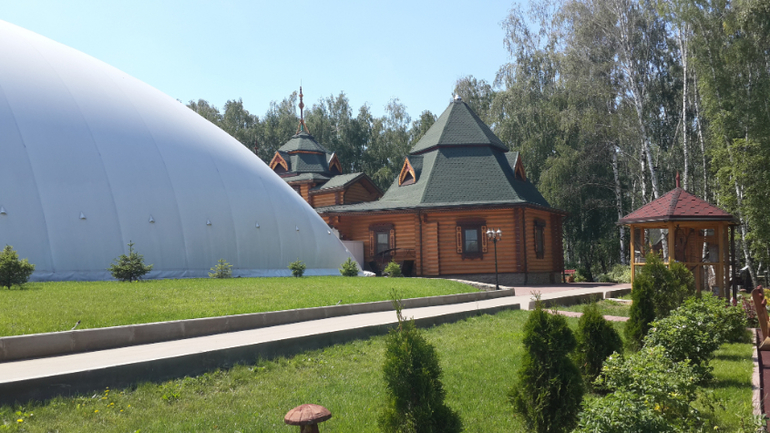 Это ресторан (который правда летом закрыт) и крытый теннисный корт