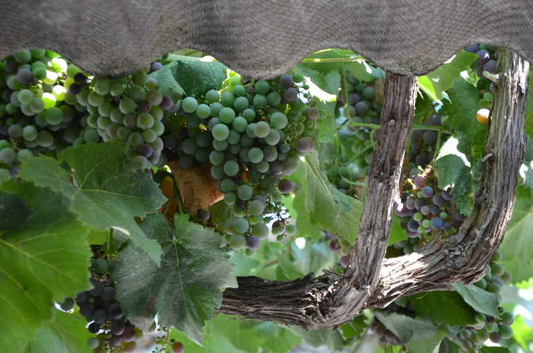Во дворе все утопает в зелени, над нашей верандой вьется виноград и спадает гроздьями.