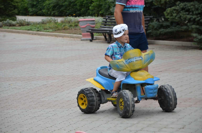 Дима покоритель машинок. Начинал вождение с самой маленькой на пульте, а закончил резвым , высоким квадриком. Вполне себе научился самостоятельно рулить и обруливать прохожих и столбы. Правда когда начинает радоваться, отпускает руль и хлопает в ладоши в движении.