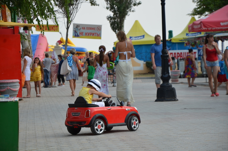 Август считается самым сезоном отдыха, но на пляжах и в городе народу не много в сравнении с теми годами. Местные говорят, что в основном россияне едут на южный берег, а украинцев практически не стало среди отдыхающих.