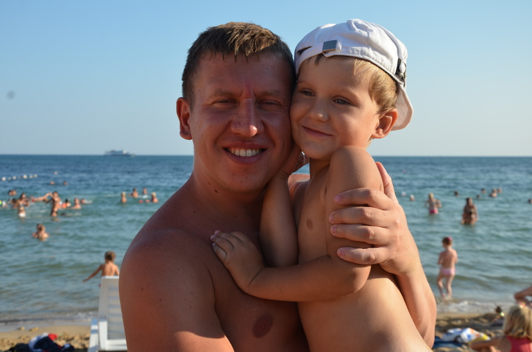 Первые дня три Дима боялся заходить в воду категорически, потом я все же заманила его и всё, с тех пор парень наш полюбил море, правда все равно купался очень осторожно с кругом и со мной, голову не мочил и воду не глотал.