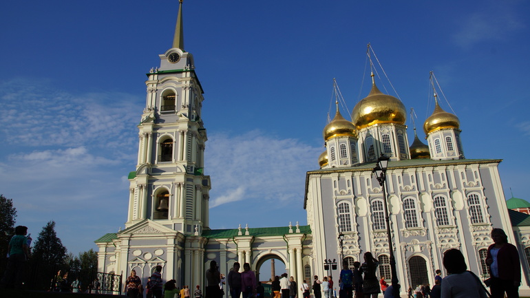 Кульминацией праздника было открытие колокольни. Это грандиозное сооружение исчезло с карты Тулы в 30-ые годы 20-ого века, когда по распоряжению городских властей было разобрана после пожара. Два года назад по инициативе губернатора Владимир Груздева началось ее восстановление. Построили колокольню очень быстро. И она великолепна! С новым строением весь облик тульского кремля преобразился. Да и что кремля! Всего центра города. Шпиль колокольни виден со всех точек города.