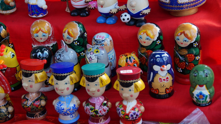 Новгородская игрушка пестрела на прилавках радужными цветами: улыбчивые традиционные матрешки и необычные в виде котов, птиц и мужичков привлекли наше внимание, серого кота мы забрали себе домой.