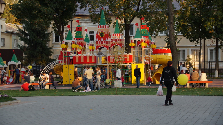 Еще один губернаторский подарок, приобретенная им на личные средства - детская площадка - кремль в миниатюре. Установлен городок в Кремлевском сквере. Сейчас это наше любимое место для прогулок. Надо сказать, что в нынешнем году кремлевский сквер полностью отремонтировали: дорожки стали ровные, деревья опилили, выложили рулонные газоны.