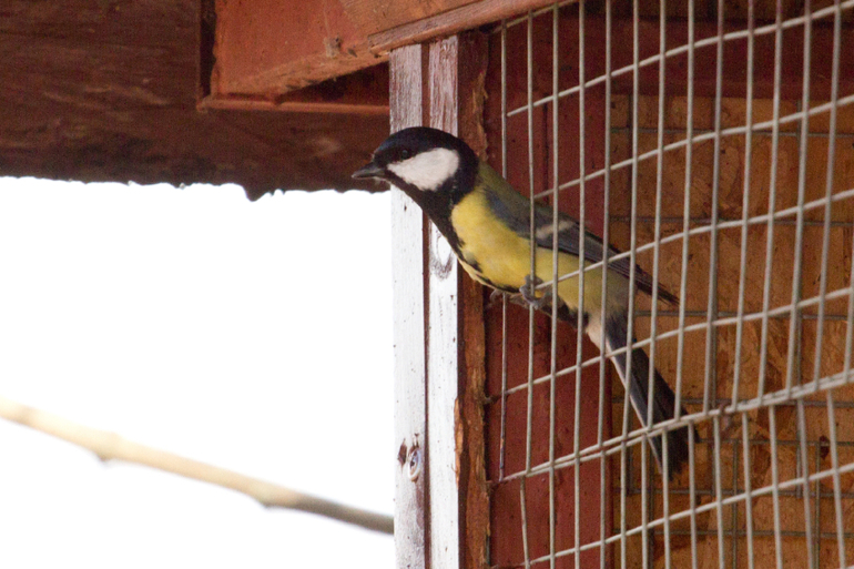 И клетки белки можно наблюдать большое количество мелкой птичьей братии всех сортов и мастей, которые хитрым образом пролезают сквозь решетку в клетку, клюют то, что не хочет есть закормленная белочка и улетают сквозь решетку обратно)))