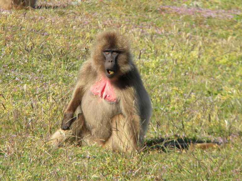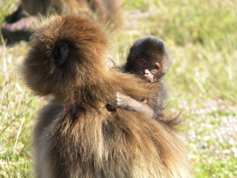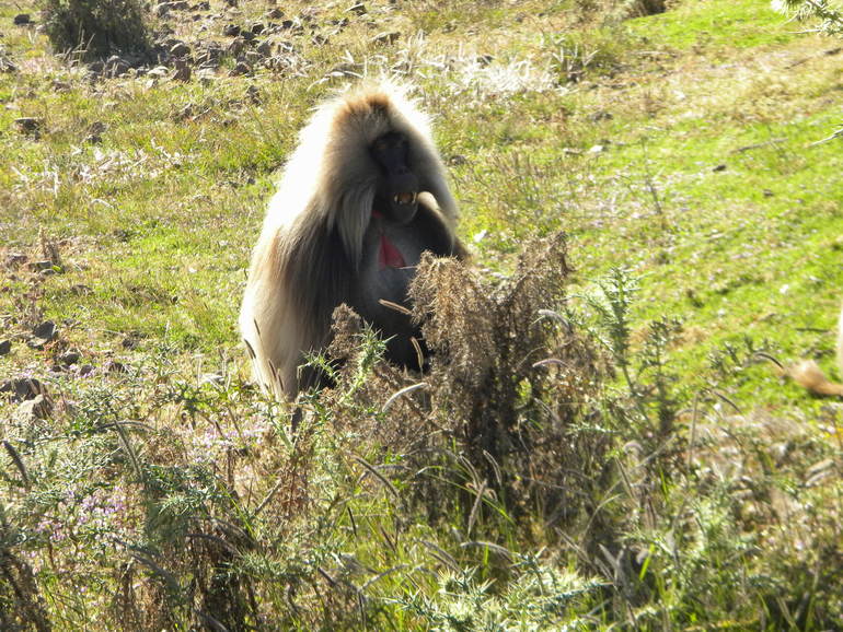 Бабуин Гелада встречается только в эфиопском нагорье, большой численностью населяя горы. Выглядят достаточно страшно, особенно самцы с впечатляющими клыками.