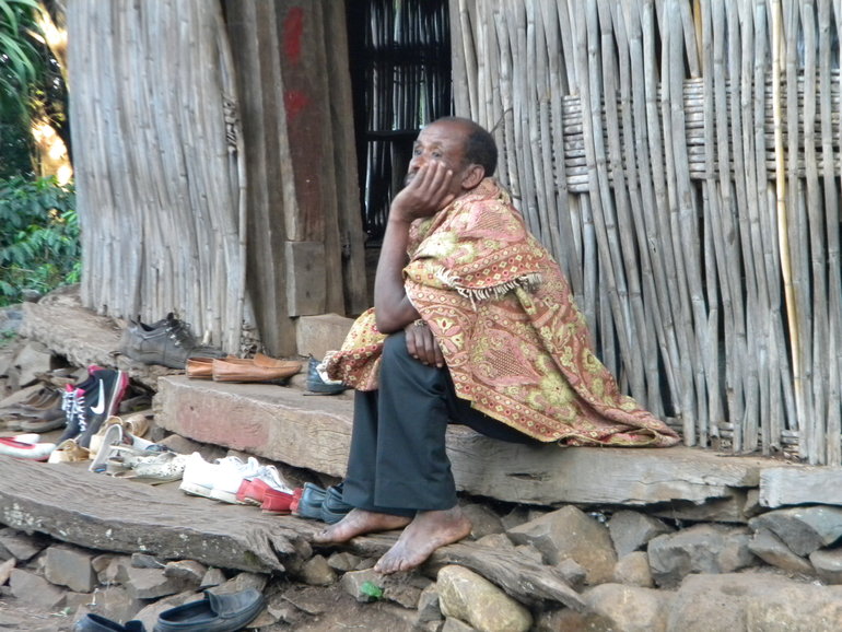 Жители деревни, от которой начинается тропа к водопадам, занимаются сельским хозяйством, и очень не равнодушны к туристам (как, впрочем, и другие местные по всей Эфиопии). Стоит автобусу остановится, его окружают торговцы, пытаясь продать хоть что-нибудь.
