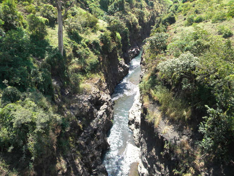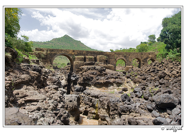 И каменный мост, построенный в 17 веке португальскими искателями приключений, который соединяет края базальтового ущелья.