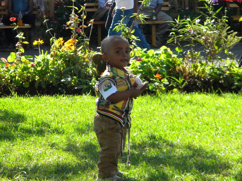 Вот такой малыш пришел с родителями тоже пообедать. Это был в Эфиопии, пожалуй, единственный ребенок, который одет чисто и даже стильно)