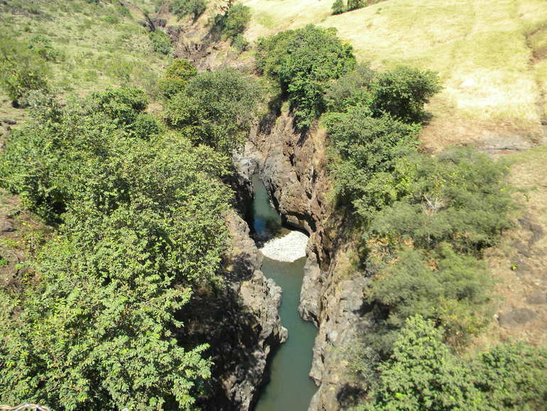 Поток, ширина которого в период дождей (сентябрь, октябрь) достигает 400м., обрушивается в отвесную пропасть глубиной 45м., брызги от него разлетаются на километр в сторону.