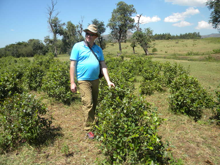 Проходим мимо чайных кустов. (Это муж на плантации. Это он инициатор поездки. Иногда мне очень хотелось его там и оставить. В особо экзотических местах. Но в самый последний момент было жалко)