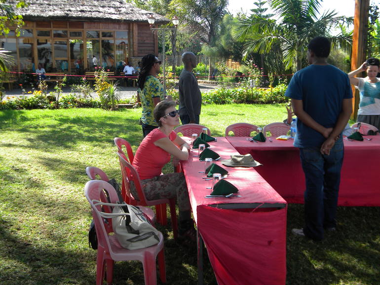 После такой прогулки нас повезли обедать в ресторан, столы стояли на поляне, с видом на озеро Тана