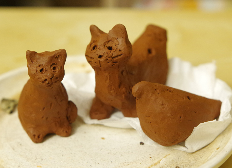 Надо сказать. Даня не очень-то любит лепить, но тут впечатлился. Свистеть в свистульки он обожает, а тут такое открытие - оказывается их лепят. В итоге малыш самозабвенно ковырялся в глине и помогал мне катать шарики, прокалывать дырочки, подавал кусочки глины. А потом весь вечер вспоминал и всем рассказывал: лепил в воздухе ладошками, потом дул в палец и говорил: мама, тетя, мяу. Мол, мама с тетей слепили кота-свистульку :)