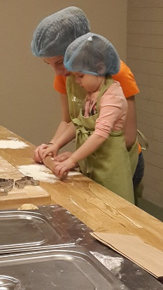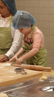 Пекарня. Как вы видите, все серьезно - фартур, шапочка, моют ручки, после каждого ребенка моют скалочку