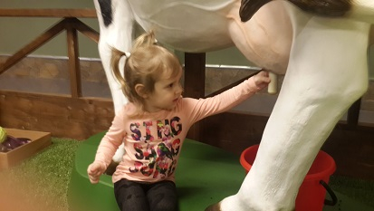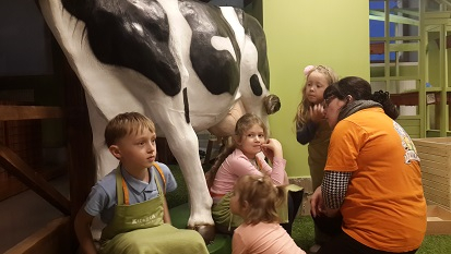 доили коровку (из сосков вымени действительно "доилась" вода в ведерко!)