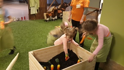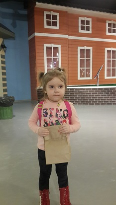 Евочке три годика, поэтому паспорт нам еще не дали (дают с 4), а вот зарплату платили везде. В итоге мы заработали 135 профи, которые можно обменять на значок. Но мы сделаем иначе: в следующий визит сдадим квитанцию в банк, там нам начислят проценты и будем копить дальше. Можно будет поменять на что-то более серьезное или сходить в кино)