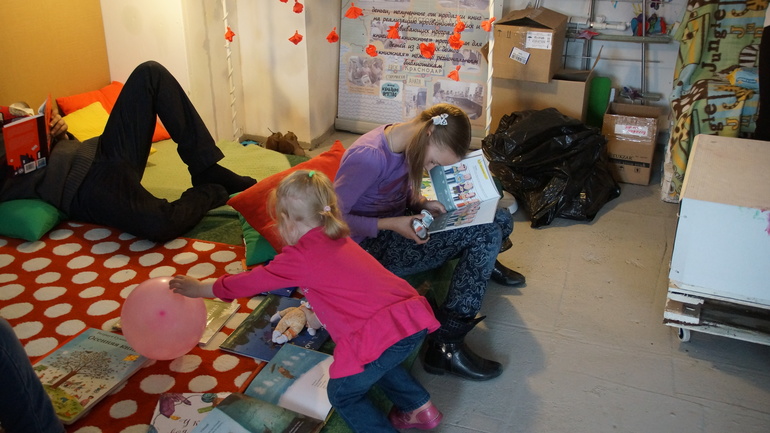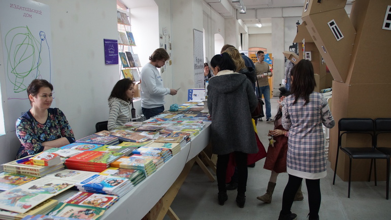 Я здесь заметила новейшие книги Бернер, Мухи, Козлова, Лобела и многие другие. Кстати, интересно, куда они отправятся после фестиваля, так как внешний вид некоторых уже оставлял желать лучшего... Надеюсь, все же, что их передадут в какую-нибудь детскую библиотеку.