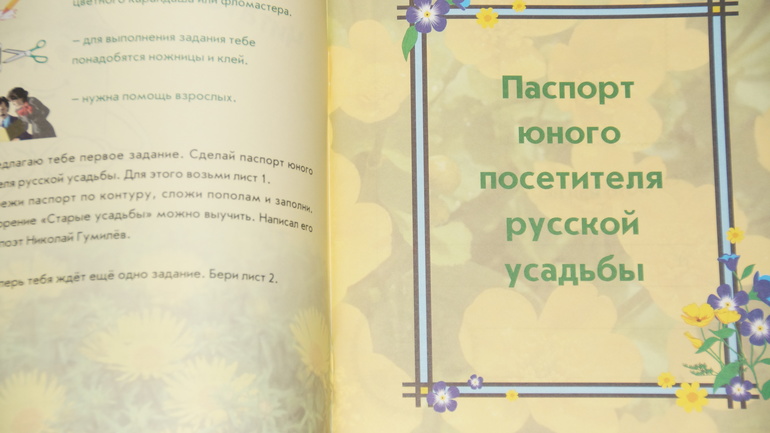 Вторая часть книги - это сборник заданий. В начале - паспорт юного посетителя русской усадьбы. Внушительно, правда?