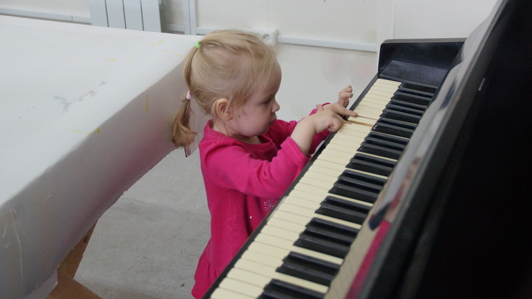 А вот это пианино - давний Анин любимчик. Облюбовала она его в свое время ЗДЕСЬ. Не успела я ее снять с начала, когда Аня играла в самом что ни на есть образе, сопереживая музыке. Но вот, что удалось запечатлеть