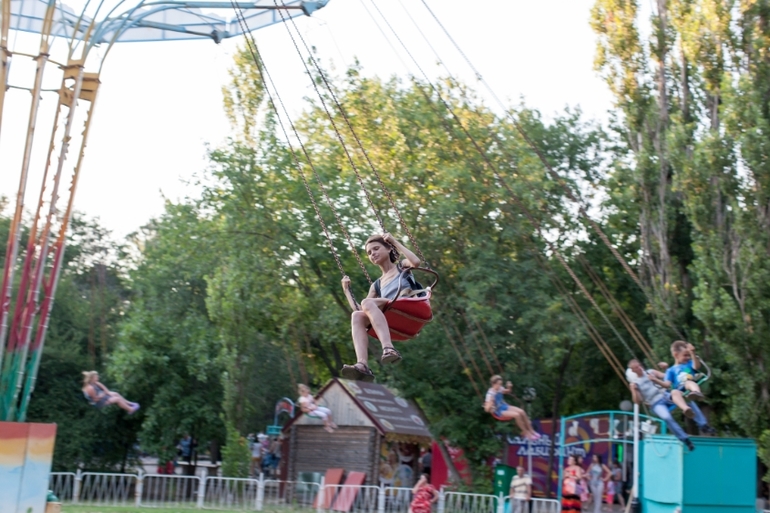 После моря мы вернулись обратно в Ейск. Там мы отправились в парк Ивана Поддубного. Ведь именно в Ейске делали старые советские аттракционы, и в этом парке они сохранились.
