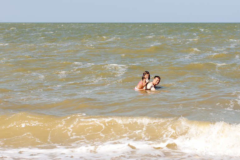 Мы побывали в очень необычном и интересном месте - на Должанской косе. Я ожидала, что будет жарко, но было отлично - с одной стороны косы были волны и ветер, было прохладно.