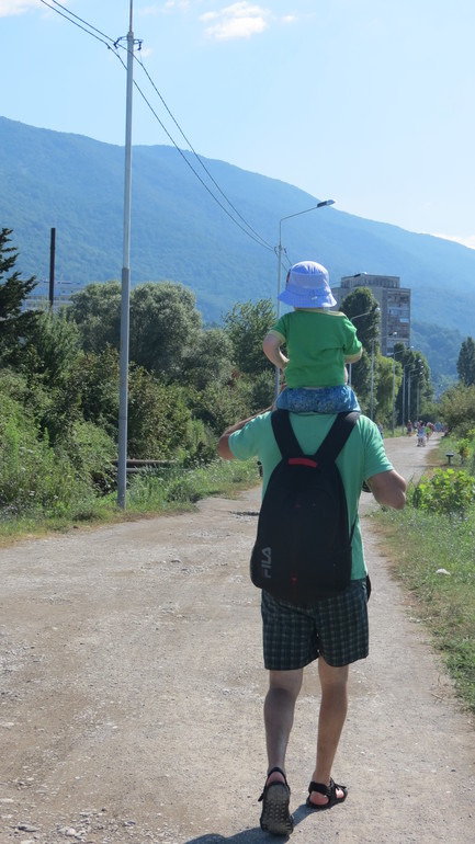 Цены. Уже растут на глазах, но еще можно обнаружить что-то дешевое. Например, открытием для нас было местное кафе «Нитика» - вкусно, по-домашнему и не дорого. Ну где можно поесть и выпить на двоих за 500-600 рублей? Еще порадовал зооуголок в приморском парке Гагры цена за вход 50 рублей, а Ярику еще кусок хлеба дали живность кормить.