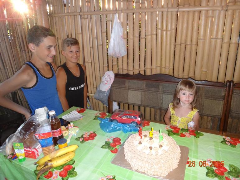 Здесь отметили 3 летие дочурки! С тортом и подарками, все как положено)) Это мы в беседке сидим.