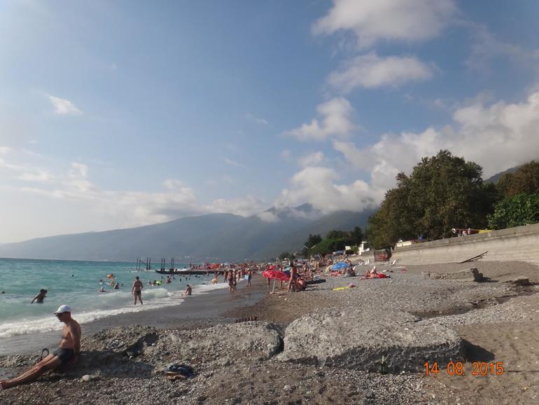 Погода все дни была отличной! По вечерам море никогда не было спокойным, волны, а вот утром и в обед красота для детей. Но днем очень жарко. Людей много, но к концу августа много уехало и стало свободнее. Мы жили в Новой Гагре.