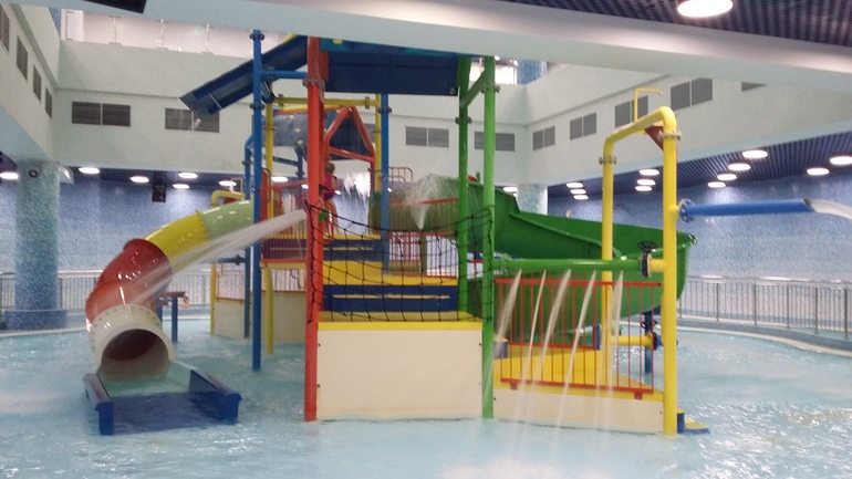 Аквапарк небольшой, много разных бассеинов, три большие горки, для маленьких игровой комплекс в воде с горками в мелком бассеине.