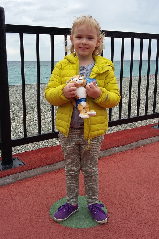 В последний день мы поехали прогуляться по набережной в Адлере в Нижнеимеретинской бухте, купить сувениров и пообедать в полюбившемся нам ресторанчике La Luna. Купили Мируне недостающий талисман олимпиады, зайчик у нас есть, мишек два разных, а вот рыси не было. Заехали в фирменный магазин Фанагория за подарками старшему поколению, очень вкусные там вина и шампанское и очень приятные цены по сравнению с московскими.