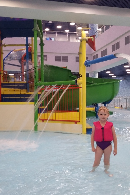 Погода портилась, ветер сильный был и дождик начал накрапывать и мы уехали в в аквапарк. В подобных местах мы нигде никогда не были, поэтому взяли на пробу два часа и пожалели, что не взяли больше и не приехали в первый день, точно бы каждый вечер туда ходили.