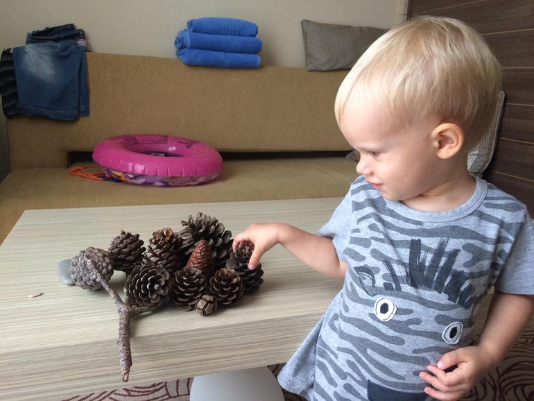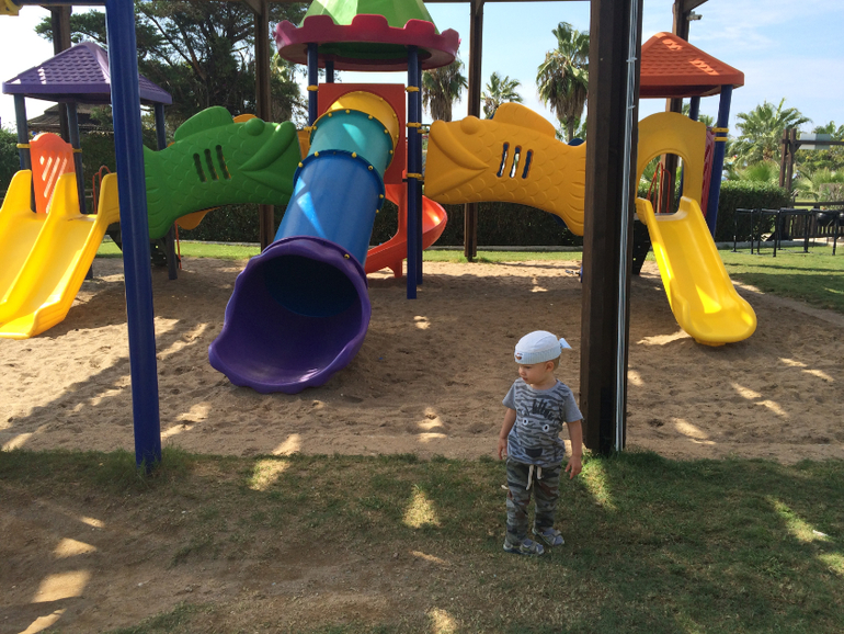 Территория отеля небольшая, но зеленая, все аккуратненько и удобно. Несколько бассейнов, в т.ч. детский и релакс (находится отдельно, с детьми ни-ни). В бассейнах мы не купались, только на море. Ребенка в них не тянуло, а я и не настаивала)) Большой плюс, что рядом с отелем озеро, вокруг которого мы ежедневно гуляли с ребенком, а также лес (или скорее лесопарк), где у нас развилась шишкомания! Весь номер был завален шишками, разными.. большими, маленькими. Кирюша собирал их везде, в лесу, на территории (если не успели убрать), у озера. Даже с собой несколько привезли.