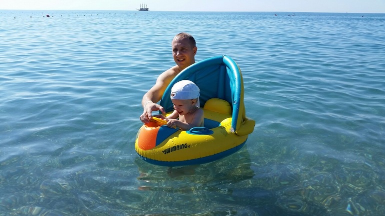 Отель на первой линии, море близко. Пляж собственный, песчаный, при входе в море галька, засчет чего море чистое и прозрачное. единственное, очень быстро уходит в глубину, малышне разгуляться негде, но наш и не стремился) Лежаков много, но, как и везде, есть люди, кидающие полотенца на 3-4 лежака и приходящие после обеда. Если прийти попозже свободных оч мало или нет совсем. Но есть там мужчина (работник пляжа), который обязательно поможет. Всегда со всеми здоровается, спросит как дела, как отдыхается, оч приятный (как они определяют кто русский, кто немец?! на лбу написано?))) Ну и несколько фото: