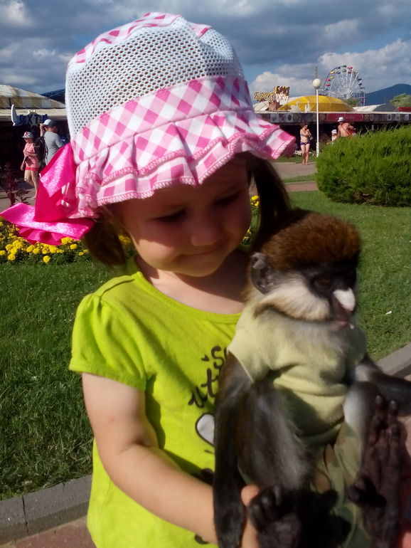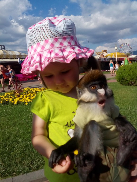 Как мы отдохнули!(рассказы и фото)Осень, несколько дней был дождь и хотелось хоть немного летнего тепла. Долго не писала в своем дневнике, решила показать, как мы провели лето. Свекровь отдыхала в санатории Архипо-Осиповка, и нам по счастливой случайности довелось побыть там пару дней. Природа там изумительная, жару мы переносим плохо, но там ее почти не ощущали. Доченька познакомилась с обезьянкой в живую, потрогала и даже сама держала ее на руках.