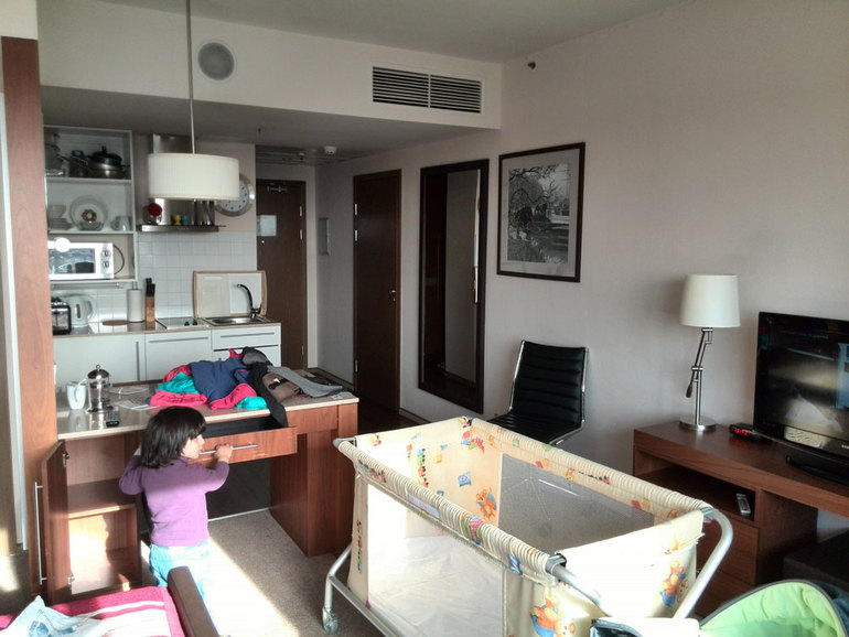 Сервис в номерах очень хороший, при этом практически незаметный))) Если нужно было что-то постирать, можно было воспользоваться стиральной и сушильной машинками бесплатно в небольшой прачечной (в магазинчике рядом с ресепшн продавали капсулы для стирки). И только в предпоследний день я узнала, что по нашей карте-ключу мы можем ходить через переход в тренажерный зал в соседней гостинице Holiday Inn (они входят в одну сеть гостиниц). А там рядом есть еще и детская комната!