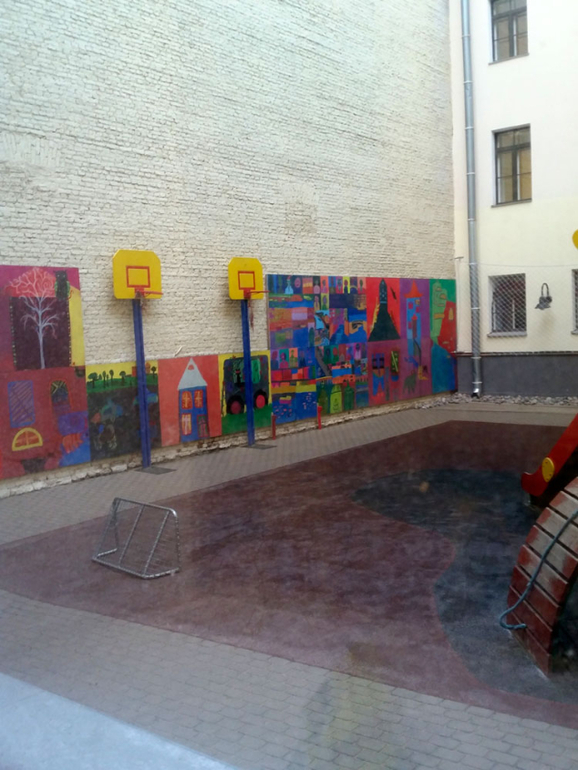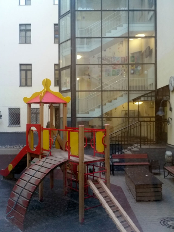 По всей квартире теплые полы и, хотя я не поклонник этого устройства, мы им активно пользовались, потому что везде лежит плитка, пол холодный, а мы (по традиции уже) заболели, преимущественно дети. И еще очень понравилось, что окна кухни выходят во двор школы (если не ошибаюсь, шведской школы, что очень вероятно, поскольку рядом генконсульство Швеции), а там детская площадка и остекленная лестница, где висят рисунки и разные поделки детей. Так приятно было за детьми наблюдать, как они бегают по лестнице на переменах и носятся по площадке даже в плохую погоду. Окна же комнат выходят в абсолютно тихий и безлюдный двор.