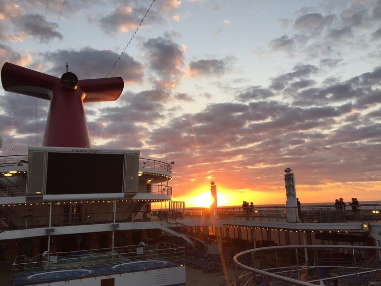 Теперь про круиз. Отдых на корабле похож на отдых в отеле. Джакузи, бассейны, водная горка, куча ресторанов , казино, детские комнаты. Только иногда чувствуется как покачивает, ну и вид из окна)))
