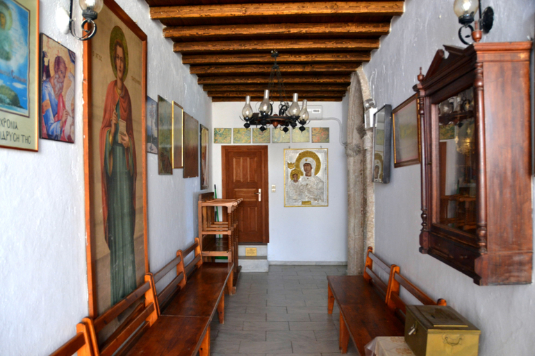 С территории храма открывался прекрасный вид на Мандраки , море и соседние острова.