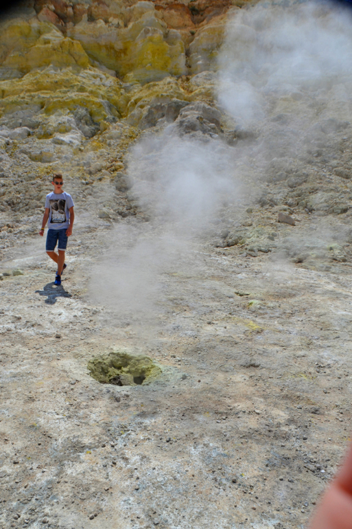 Чуть дальше можно было бесплатно попариться) Из под земли выходили столбы обжигающего пара, рядом с которыми невозможно было находиться более минуты. Даже через плотную обувь чувствовался жар земли.