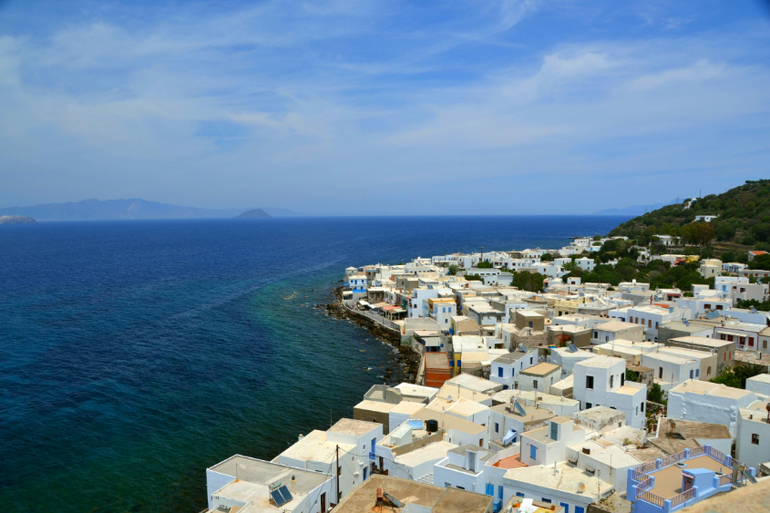 Перед нами была столица Нисироса - Мандраки, с белоснежными низкими домиками с синими ставнями, расположившимися на самом берегу моря. Еще в дома мы решили, что поездка на этот остров будет обязательной частью в нашей экскурсионной программе, потому что основная достопримечательность острова - спящий вулкан.