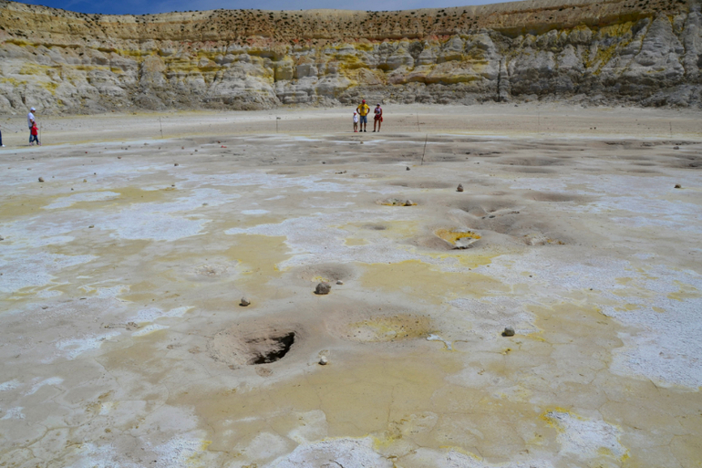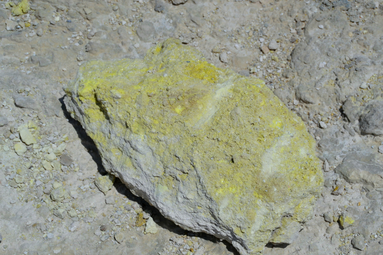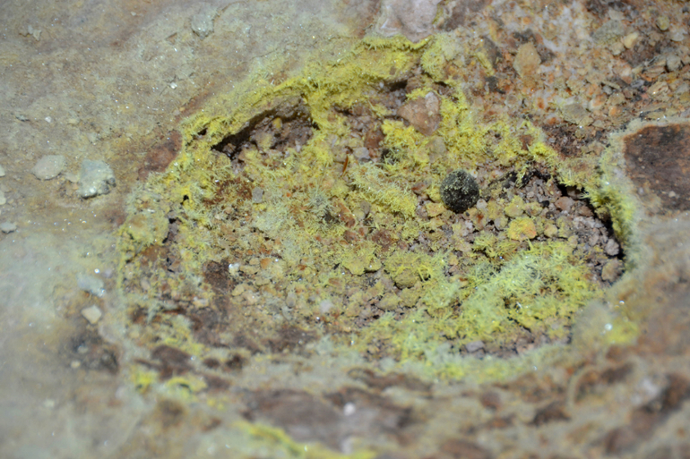 Вся поверхность кратера покрыта серой.