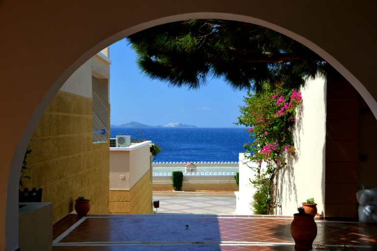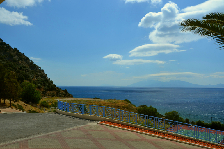 Еще через час мы заселились в номер, и нам открылся прекрасный вид на Эгейское море и соседние острова.