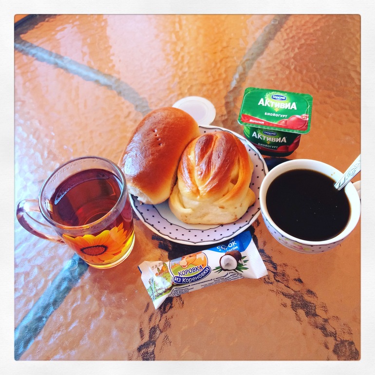 Мамин и папин завтрак:))))))))))))Дочке варили кашу.