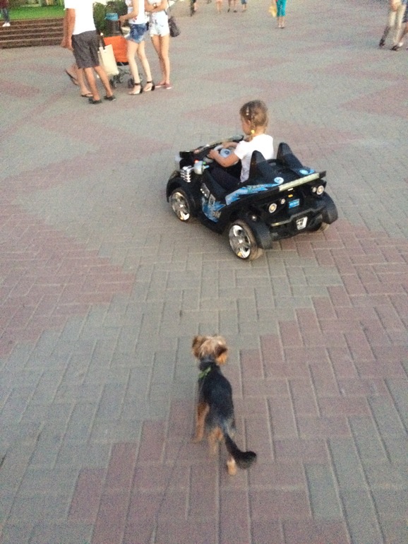 Собак наш тоже на прогулке:)) Вообще девчонка наша была звездой там, подходили гладили ее, знакомились. Она у нас вроде и ручная собака, но между тем, если чужой человек садился рядом с кем-то из своих, Ника начинала рычать. Охранница она у нас:))