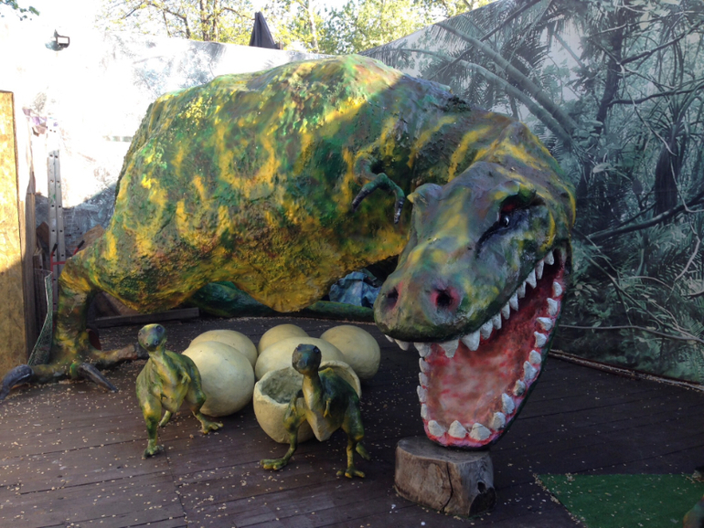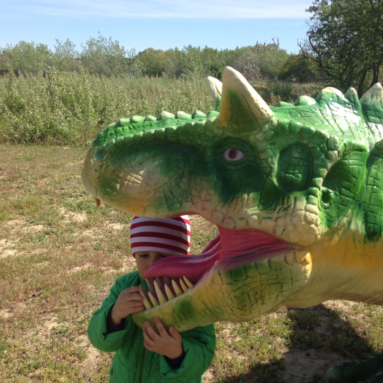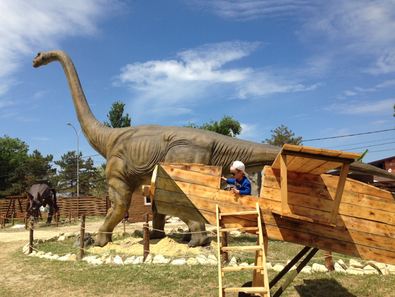Дождались, посетили (детский билет 450 р., взрослый - 400, или наоборот), парк идентичен нашему в Химках, тоже двигаются и рычат, есть большая песочница, где можно пораскапывать скелет динозавра. Вот там-то мы и провели большую часть времени. Ещё я из Москвы прихватила Яйцо Hasbro внутри с зародышем динозавра и незаметно прокопала его. Вот это был полный восторг, дети переместились к находке и не могли поверить своему счастью, специальными инструментами яйцо разбили, зародыш был извлечён🐣, сын счастлив - почувствовал себя юным палеонтологом.