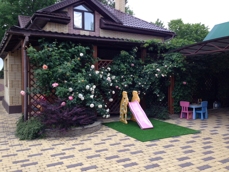 Гостевой дом, где мы прожили 1,5 мес. имеет отличную географию - самый центр, но на тихой улице, в 300-х м от моря, напротив лечебного корпуса санатория "Дилуч", рядом Казачий рынок и парк отдыха с огромным количеством детских развлекух ) Очень чисто и в доме и на территории, Уборка раз в 3 дня, смена постельного белья - 1/5дней, также гостям предлагают питание в очень уютной столовой)