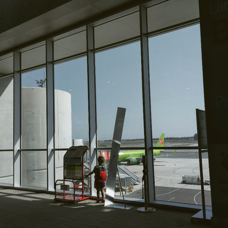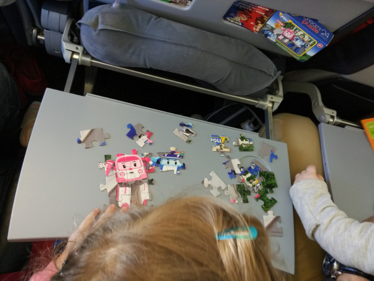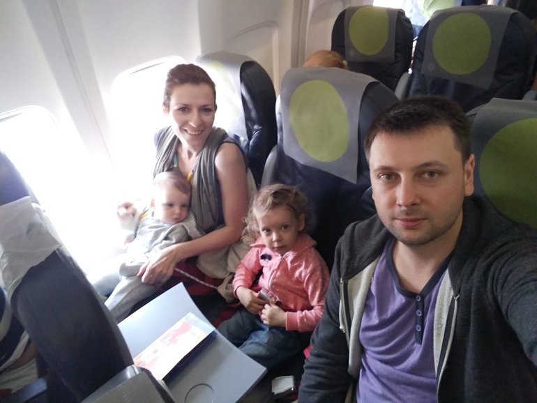 Перелет перенесли хорошо, старшая с чупа-чупсом, младший с гв.